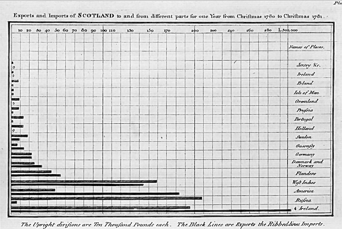 Gráfico de barras original de William Playfair em The Commercial and Political Atlas (1786).