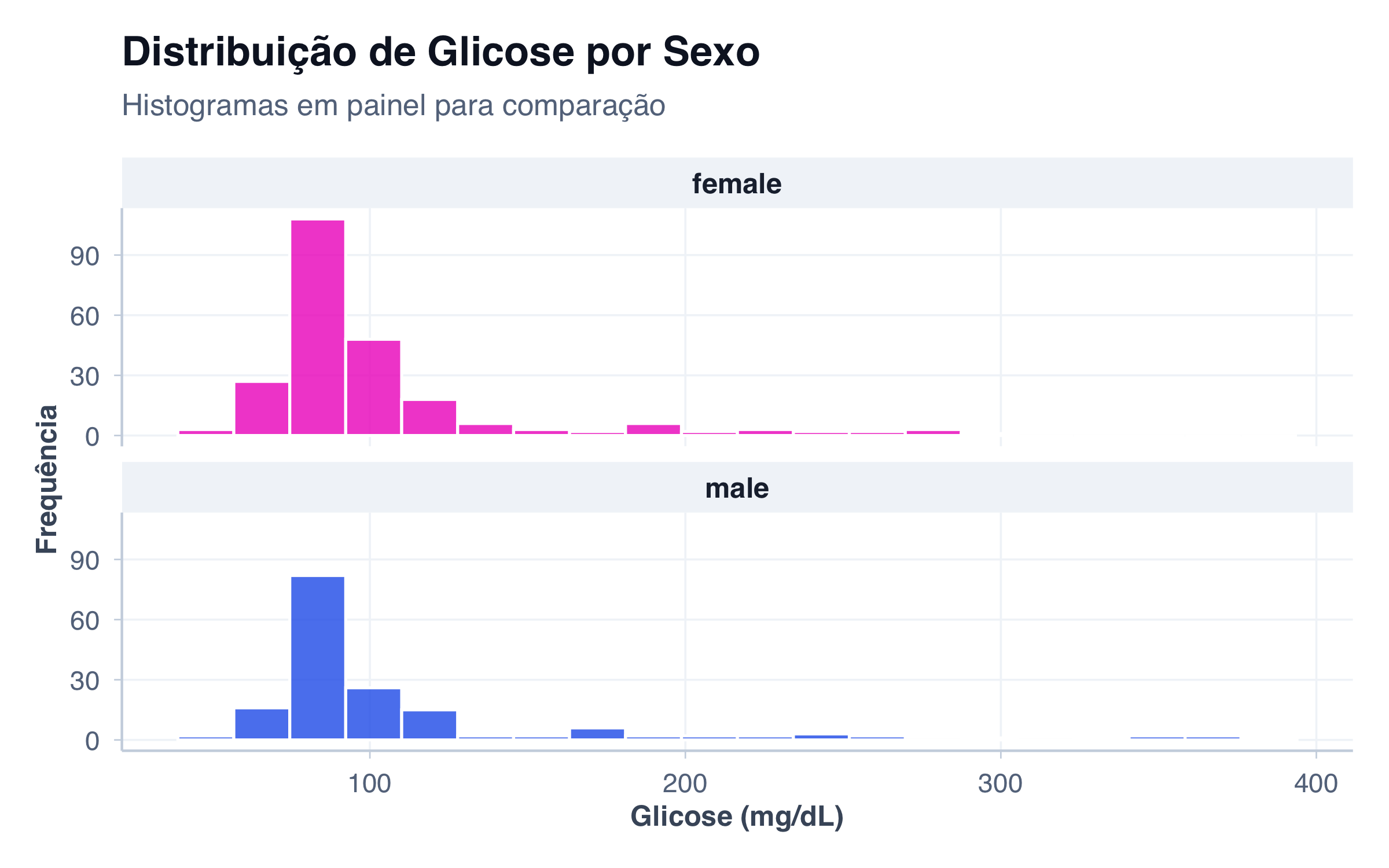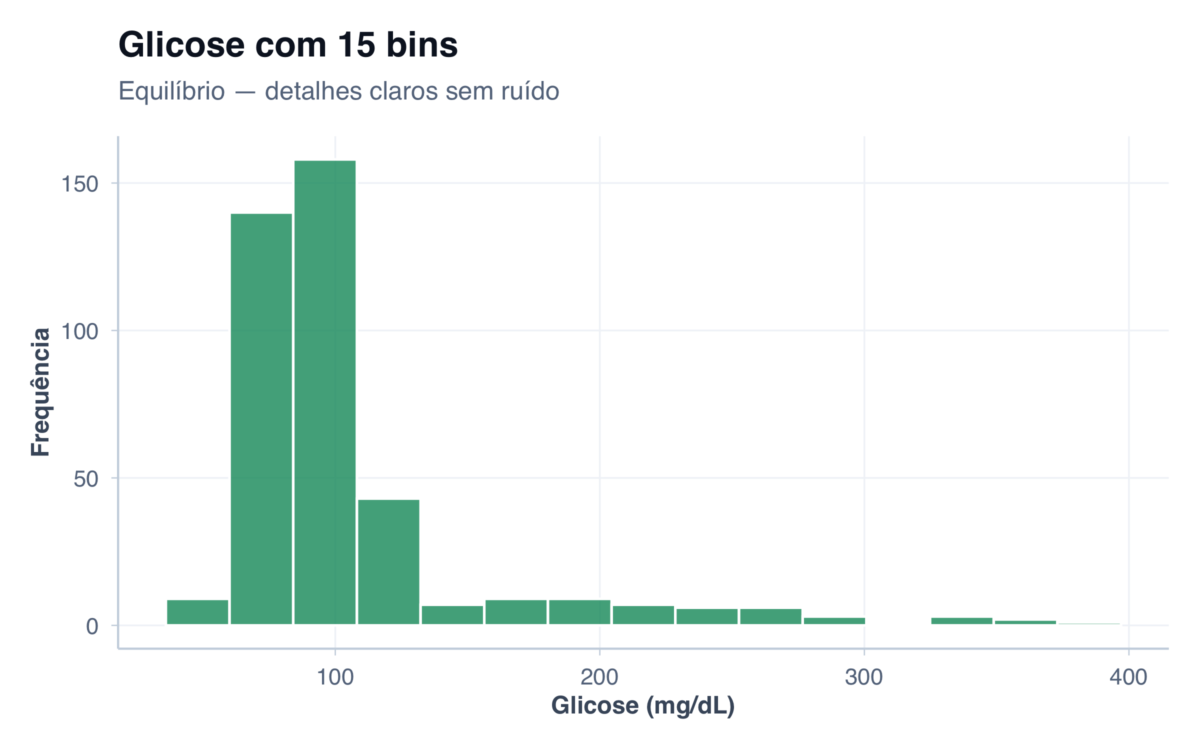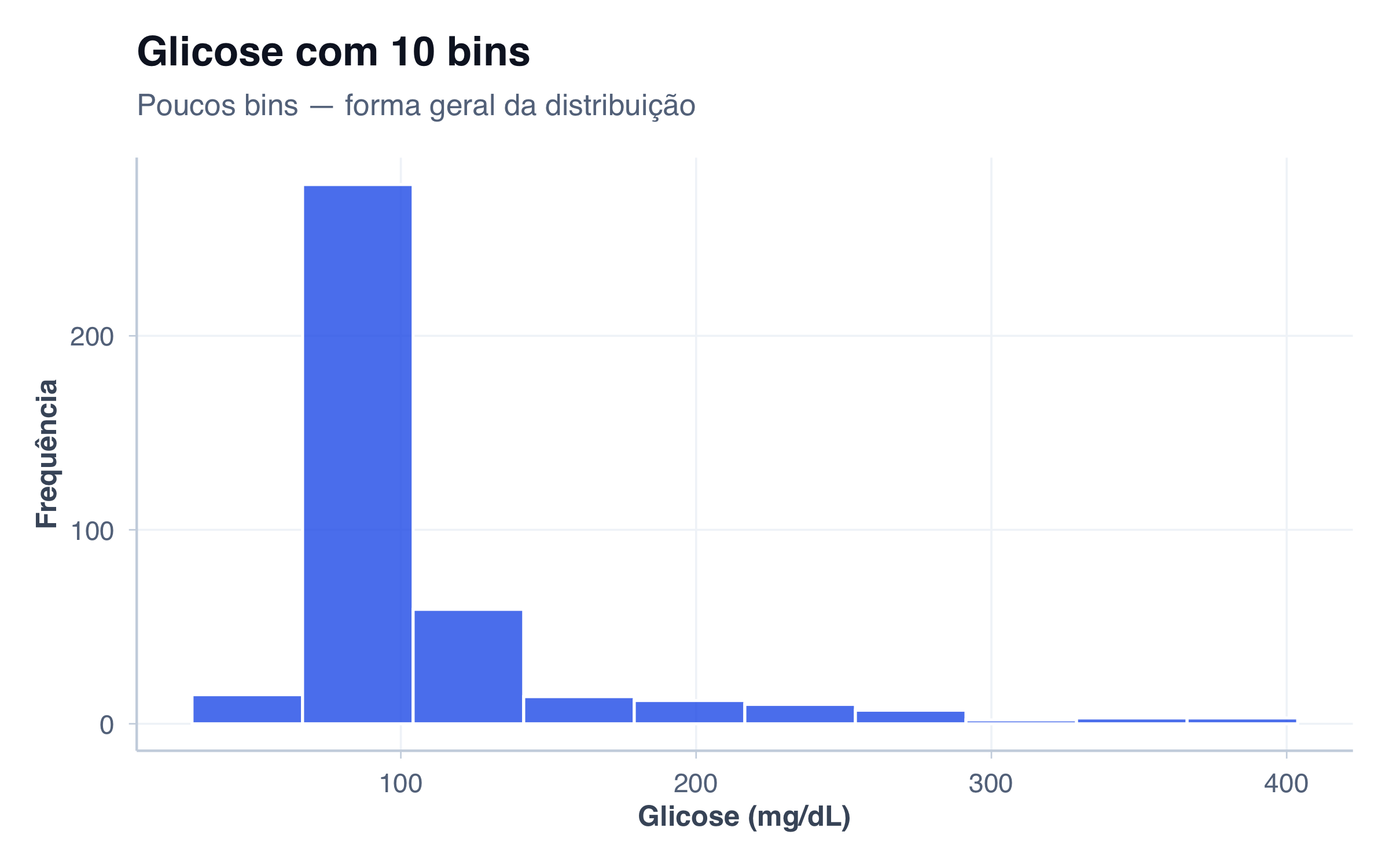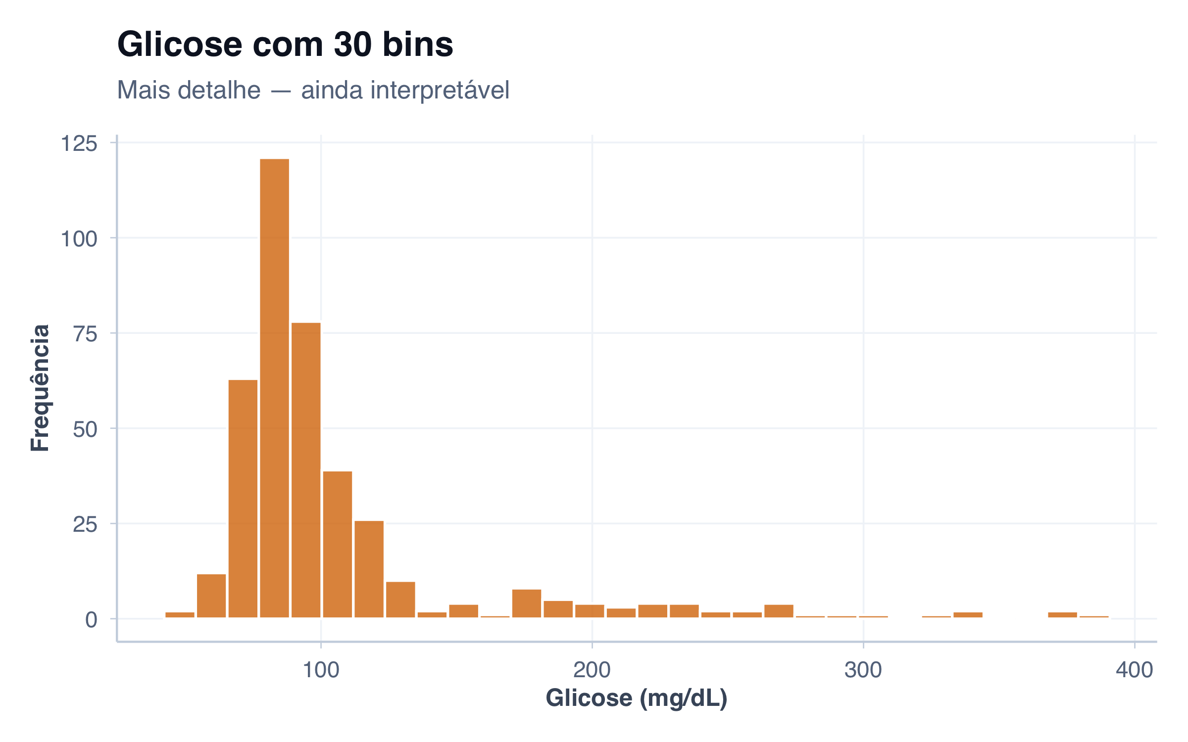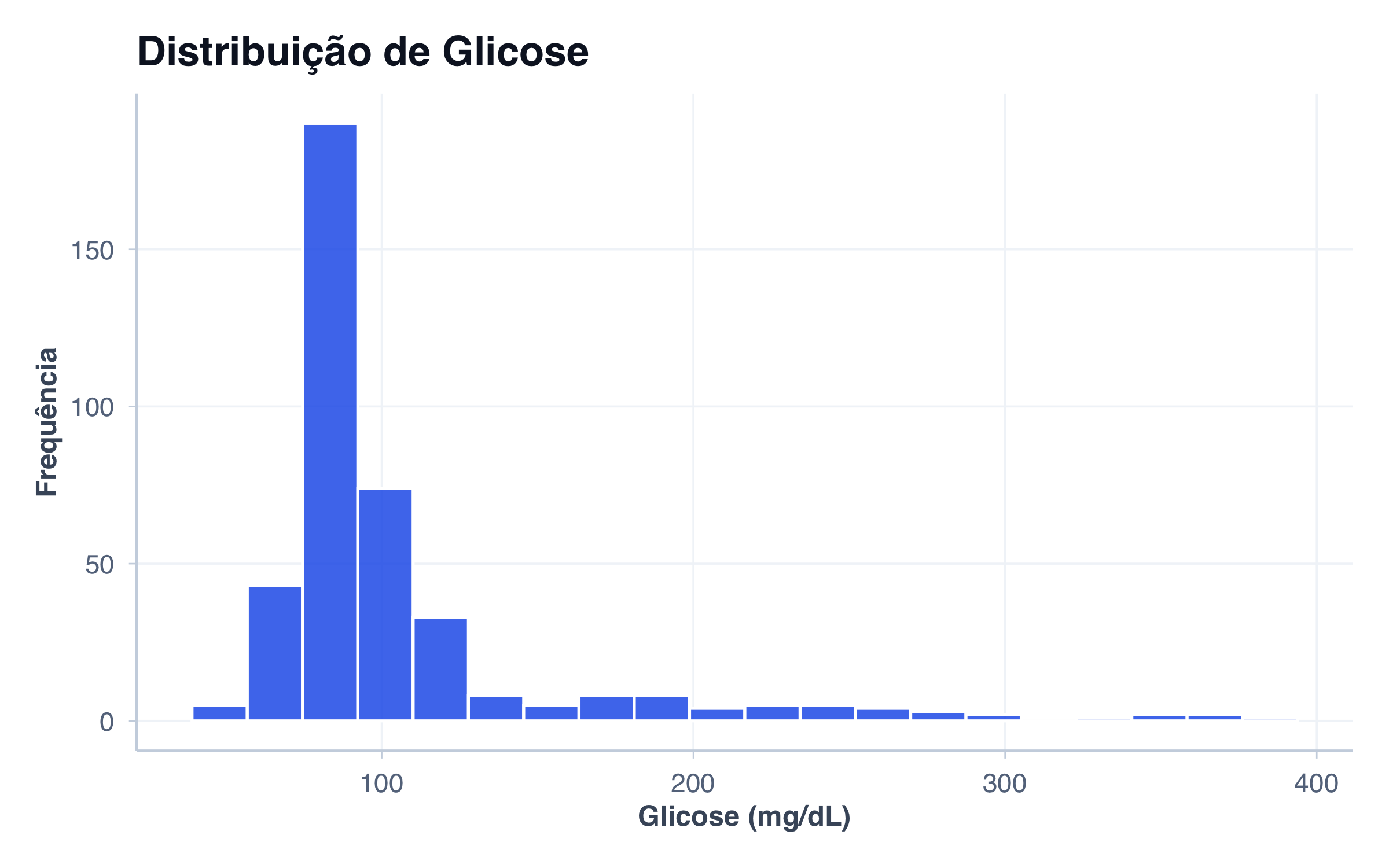 # Histograma: distribuição de glicose (variável numérica contínua)