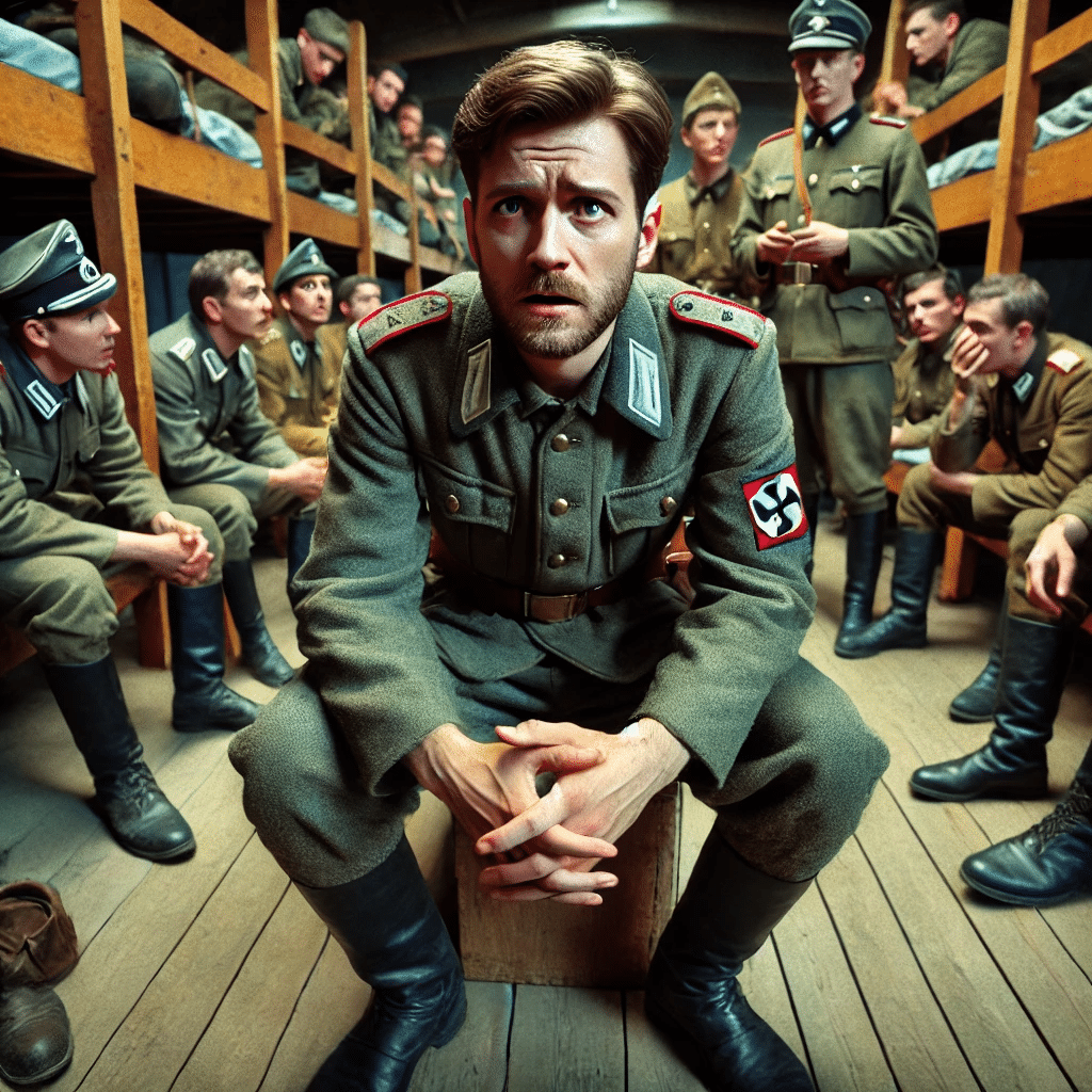 Ranier começou a trabalhar como militar no exército alemão em 1940. Desejava seguir carreira de oficial, mas tinha receio de não conseguir. Logo começou a perceber que “havia algo estranho”, mas não sabia o que. Aos poucos começou a notar “rumores” de que ele iria ser o chefe da companhia. Ouvia esses rumores sobre o próximo chefe e, embora seu nome não fosse dito, passou a acreditar que se referiam a ele. Passou a sentir uma certa inimizade entre os colegas, e atribuia issa a uma inveja. Pouco a pouco passou a sentir que todos se voltavam contra ele. Certo dia o capitão da companhia lhe disse “coloque-os em ordem, você é o responsável”. Ele percebeu que essa era uma alusão à sua ascensão profissional.